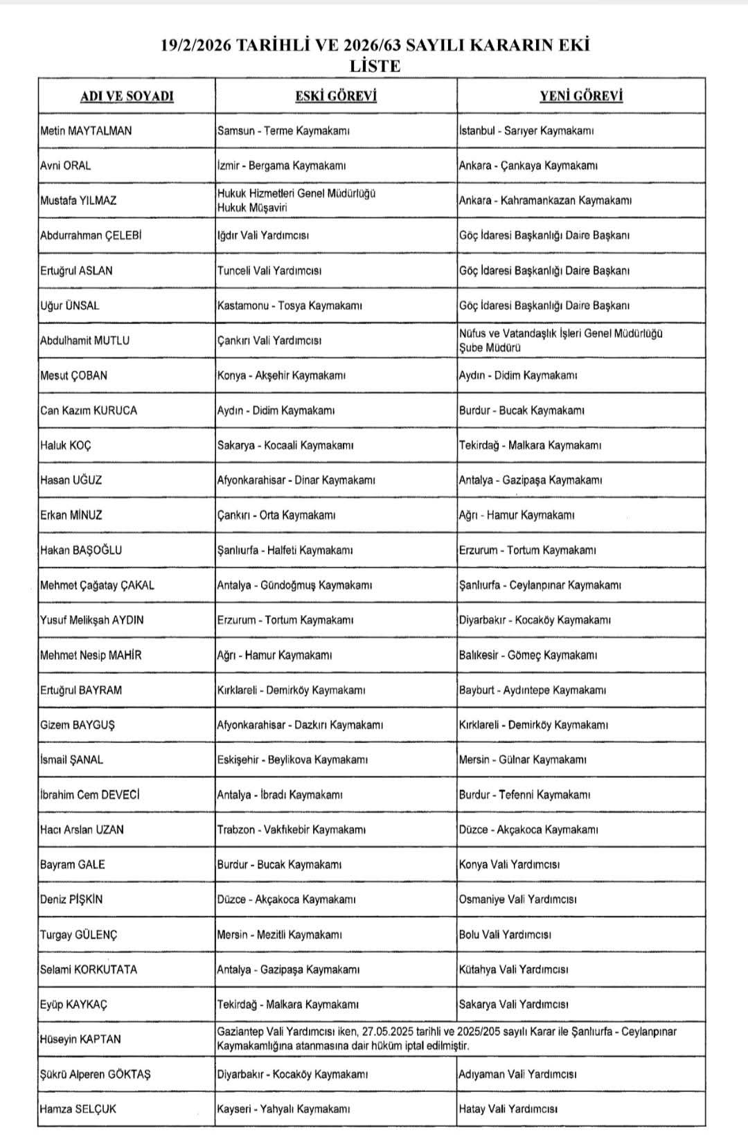 KAYMAKAMLIK KARARNAMESİ YAYIMLANDI