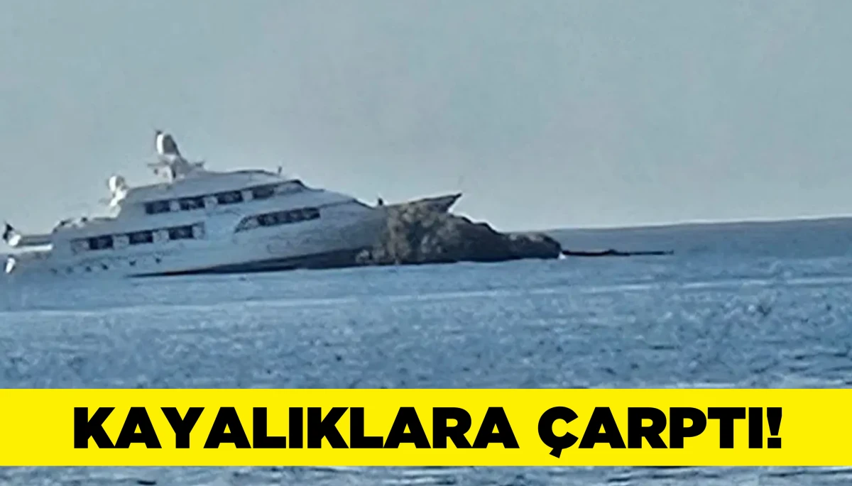 Muğla Bodrum’da 39 metre uzunluğundaki ‘Monte Carlo’ adlı motoryat, Aspat Kalesi açıklarında seyir halindeyken kayalıklara çarptı.