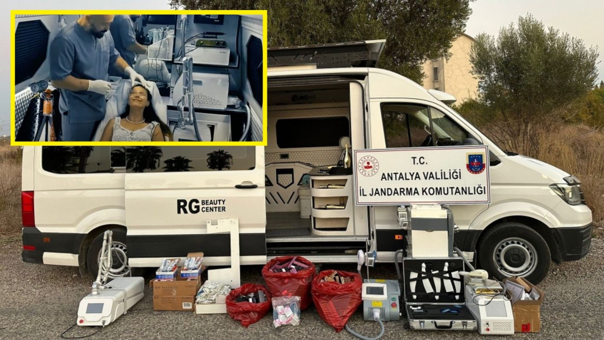 Antalya’nın Manavgat ilçesi Çolaklı Mahallesi’nde Kaçakçılık ve Organize Suçlarla Mücadele (KOM) Şube Müdürlüğü ve Manavgat ilçe Jandarma Komutanlığı ekipleri tarafından yürütülen çalışmalar kapsamında, kendisini doktor olarak tanıtan bir şahıs tespit edildi. Şahsın ikametinde ve seyyar olarak VIP araçta güzellik salonunu adı altında botoks, yağ aldırma, yüz gençleştirme ve diş beyazlatma gibi işlemler yaparak insan sağlığını tehlikeye sokacak faaliyetlerde bulunduğu belirlendi.