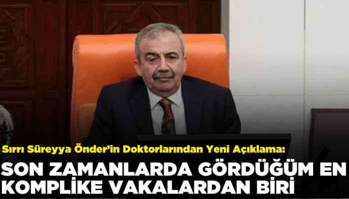 TBMM Başkanvekili ve DEM Parti İstanbul Milletvekili Sırrı Süreyya Önder'in son durumuyla ilgili doktorlar hastane önünde tekrar bir açıklama yaptı. Doktorların basın mensuplarına yaptığı konuşmada şu ifadelere yer verildi: