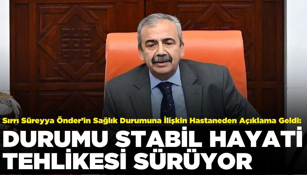 Kalp rahatsızlığı ve aort yırtılması sebebiyle hastaneye kaldırılarak yoğun bakımda tedavi altına alınan TBMM Başkanvekili ve DEM Parti İstanbul Milletvekili Sırrı Süreyya Önder'in sağlık durumuna ilişkin hastaneden yeni bir açıklama yapıldı.
