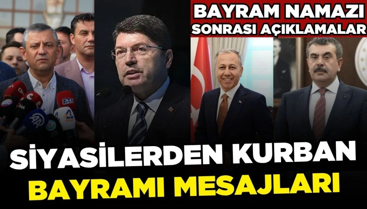 Siyasiler, Kurban Bayramı dolayısıyla mesajlarını paylaştı. İşte CHP lideri Özgür Özel, İçişleri Bakanı Ali Yerlikaya, Adalet Bakanı Yılmaz Tunç ve Milli Eğitim Bakanı Yusuf Tekin'in kurban bayramı mesajları...
