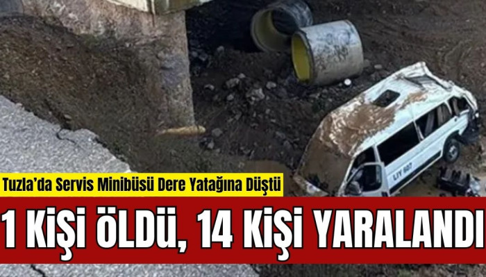 Tuzla Aydınlı Mahallesi'nde servis minibüsü yaklaşık 20 metre yükseklikten dere yatağına düştü. Kazada 1 kişi hayatını kaybederken, 14 kişi yaralandı.