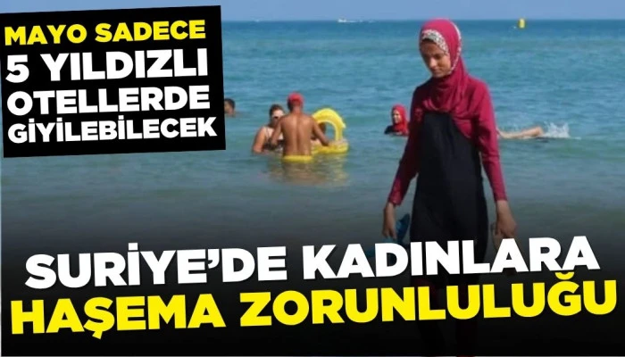 Suriye’de Ahmed el Şaraa liderliğindeki Suriye Geçici Hükümeti, kadınların kamuya açık plajlar ve yüzme havuzlarında tesettürlü mayo (haşema) ya da benzeri vücudu tamamen kapatan kıyafetler giymeden bulunmasını yasakladı.