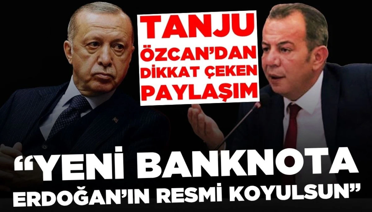 CHP'li Bolu Belediye Başkanı Tanju Özcan, sosyal medyadan yaptığı paylaşımda TL'deki değer kaybından dolayı yeni banknot çağrısı yaptı. Özcan dikkat çeken paylaşımında, banknotun üstüne Cumhurbaşkanı Recep Tayyip Erdoğan'ın resmini koymayı teklif etti.