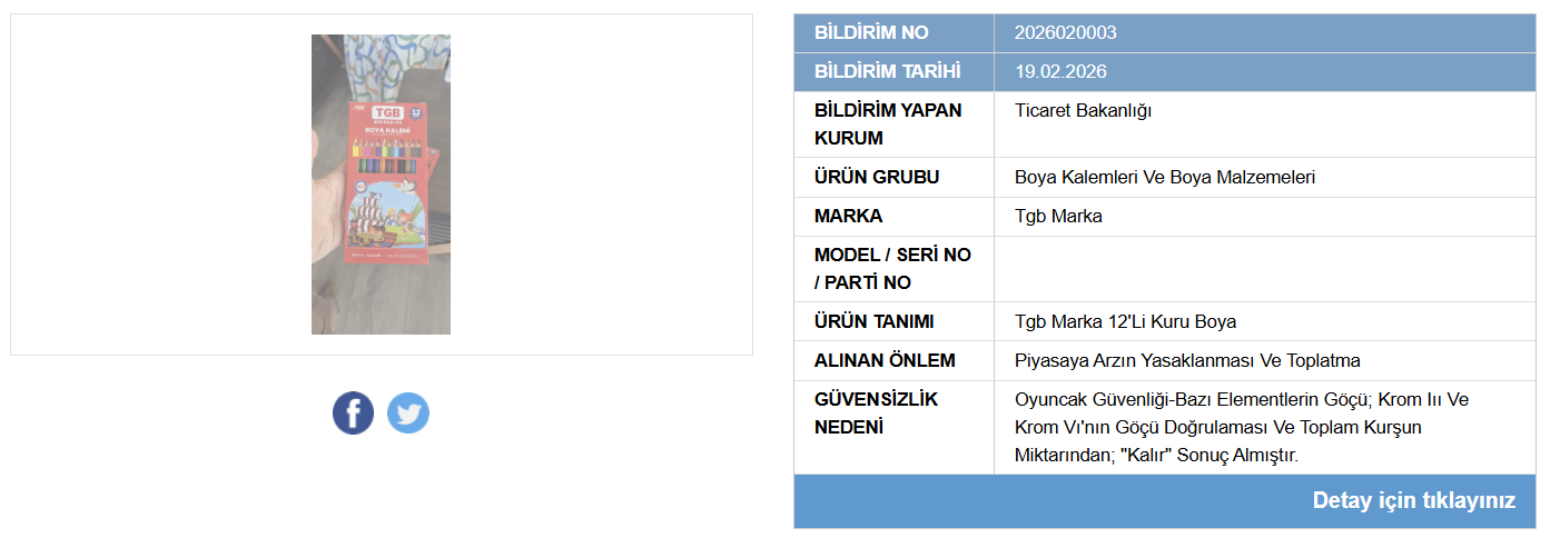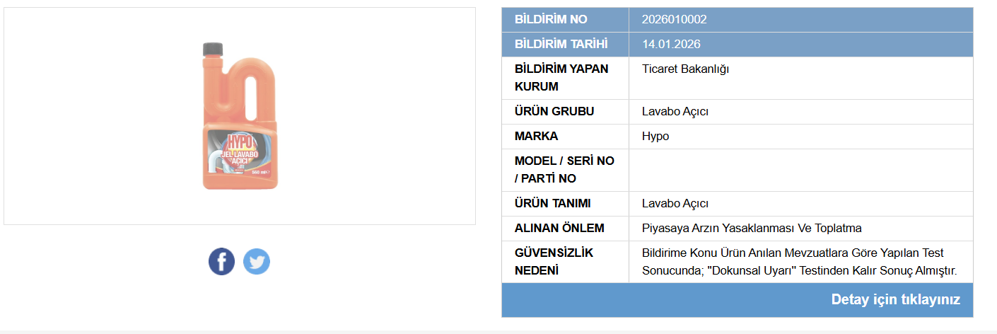 Ticaret Bakanlığı tarafından yürütülen denetimlerde, tüketici sağlığını tehdit eden yeni ürünler tespit edildi. Bakanlık, tespit edilen ürünleri Güvensiz Ürün Bilgi Sistemi (GÜBİS) üzerinden kamuoyuna duyurdu.