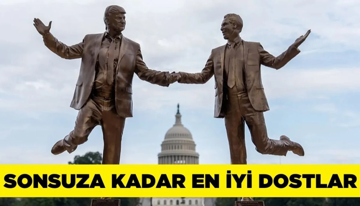 ABD Başkanı Donald Trump ve cinsel suçlardan hüküm giymiş Jeffrey Epstein’ı el ele tutuşurken betimleyen bir heykel, Washington’daki National Mall alanında sergilendi. “Best Friends Forever” (Sonsuza Dek En İyi Dostlar) isimli çalışma, anonim bir sanatçı tarafından tasarlandı.