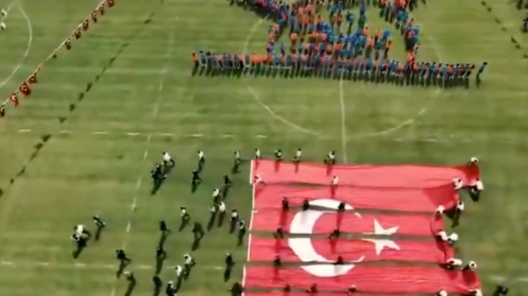 Sosyal medyada yayılan bir videoda, dev Türk Bayraklı koreografinin tamamlanmasının ardından, öğrencilerin yere serilen bayrağın üzerinde yürüdüğü iddia edilmişti. Görüntüler sosyal medyada viral oldu.