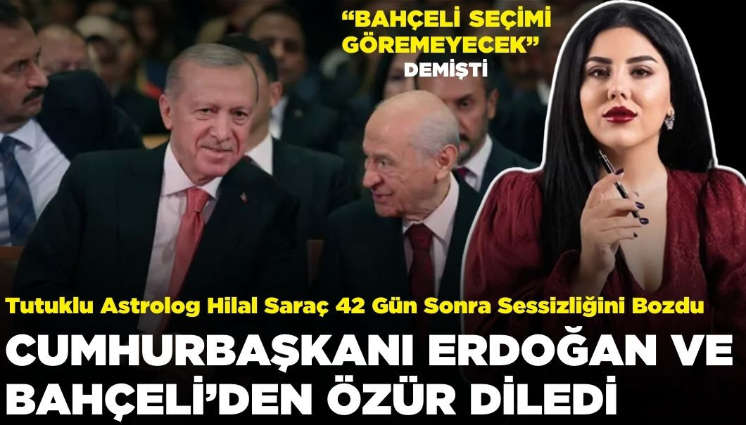 MHP Genel Başkanı Devlet Bahçeli'nin sağlık durumu hakkında sosyal medya hesabından yaptığı paylaşımlar nedeni ile 8 Şubat tarihinde tutuklanan astrolog Hilal Saraç, sosyal medya hesabı üzerinden Cumhurbaşkanı Recep Tayyip Erdoğan ve Bahçeli'den özür diledi.