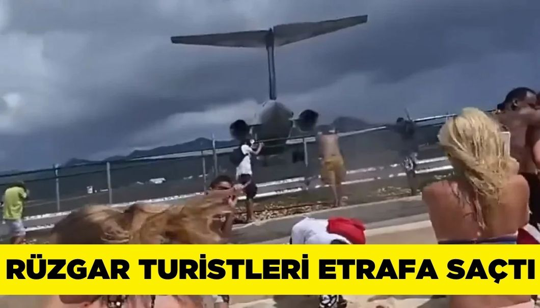 Bir yolcu uçağının kalkışı esnasında, o anları kamera kaydına almak için plajda bulunan çok sayıda turist, uçağın motorlarından yayılan güçlü hava akımına maruz kaldı. Turistler, şiddetli rüzgarın etkisiyle uçarak etrafa savruldu.