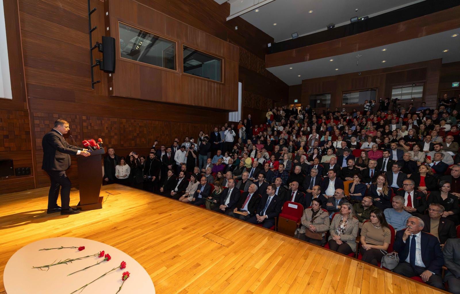 Anma programında konuşan İzmir Büyükşehir Belediye Başkanı Dr. Cemil Tugay, “Yaklaşık bir asır önce bir lider çıktı ve çok değerli bir mücadele verdi. İnsanlarımıza vatandaş olmayı ve Cumhuriyet rejimini kazandırdı. Gazi Mustafa Kemal Atatürk önderliğinde, Uğur Mumcu’nun bir videosunda kendi ağzından da söylediği gibi, bugüne kadar kurulmuş en güçlü ve en büyük örgüt kurularak Kuva-yı Milliye hareketi başlatıldı ve zafere ulaştırıldı. Böylece onurlu ve bağımsız bir Cumhuriyet kurduk. Bu millet yaptı bunu, atalarımız yaptı. Biz onların torunlarıyız, çocuklarıyız. Ama ülkemiz üzerinde karanlık emelleri olan, kişisel hesapları bulunanlar hiç bitmedi. Her zaman güç sahibi olmaya, insanların eşitsiz ve adaletsiz bir ülkede yaşamasını umursamamaya ve ülkenin kaynaklarını kendi çıkarları için kullanmaya devam ettiler. Uğur Mumcu da bunları dile getiren insanlardan biriydi. Ama bir farkı vardı: Söylemek ve bilmek başka bir şey, bunun mücadelesini vermek bambaşka bir şeydir. O, söylediği her cümlenin altını yaptığı araştırmalar ve elde ettiği belgelerle dolduruyordu” dedi.
