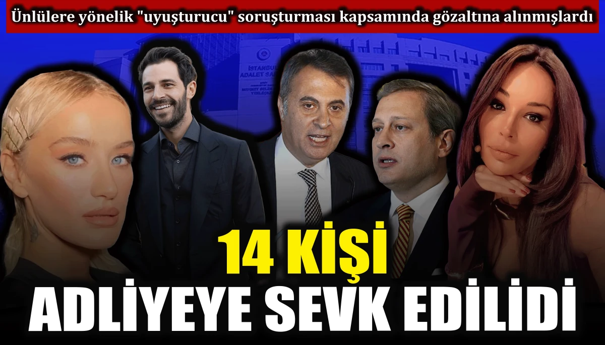 İstanbul'da düzenlenen ünlülere yönelik uyuşturucu soruşturması kapsamında gözaltına alınan 14 kişi, adliyeye sevk edildi.