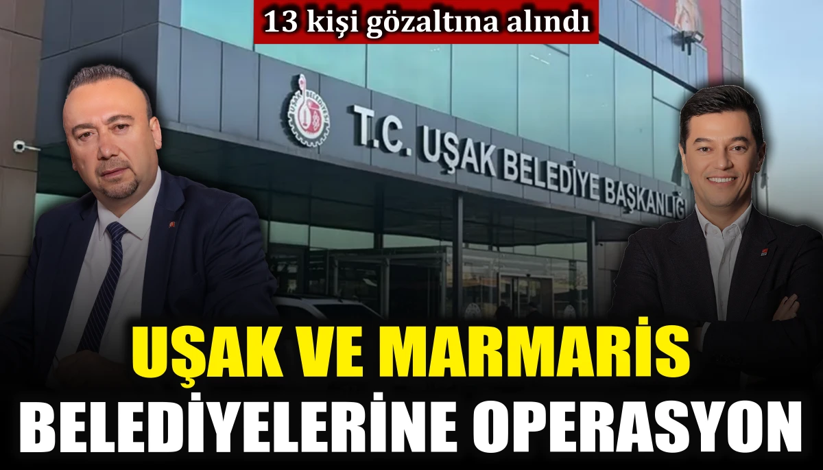 CHP'li Uşak ve Marmaris Belediye’sine operasyon düzenlendi. Uşak Belediye Başkanı Özkan Yalım ve Marmaris Belediye Başkan Yardımcısı dahil 13 kişi gözaltına alındı.