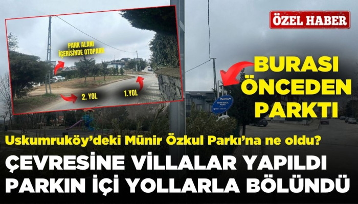 Sarıyer Uskumruköy'deki Münir Özkul Parkı, yollarla bölündü. Parkın bir kısmı otopark olarak kullanılıyor. Sarıyer Belediyesi ise parkın nasıl bu hale geldiği konusunda açıklama yapmaktan kaçınıyor