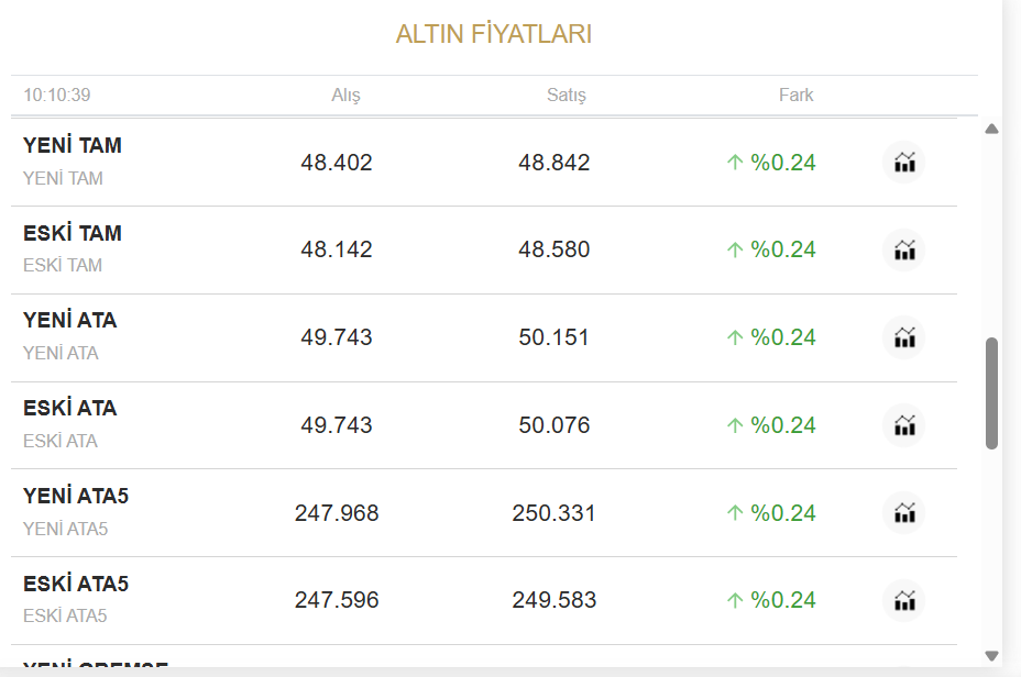 SERBEST PİYASA ALTIN FİYATLARI