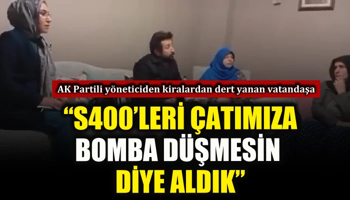 AK Partili yönetici, ev ziyaretinde kiralardan dert yanan vatandaşa, "Biz şimdi S400leri aldık niye? Çatımız sağlam olsun hanelerimize mermiler bombalar düşmesin diye” şeklinde karşılık verdi.