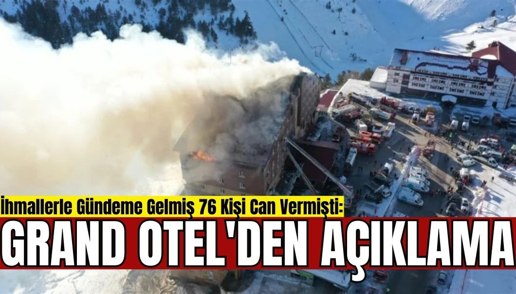Bolu Kartalkaya'daki Grand Kartal Otel'de 76 kişinin hayatına mal olan yangın faciasının ardından otelden ilk açıklama geldi.