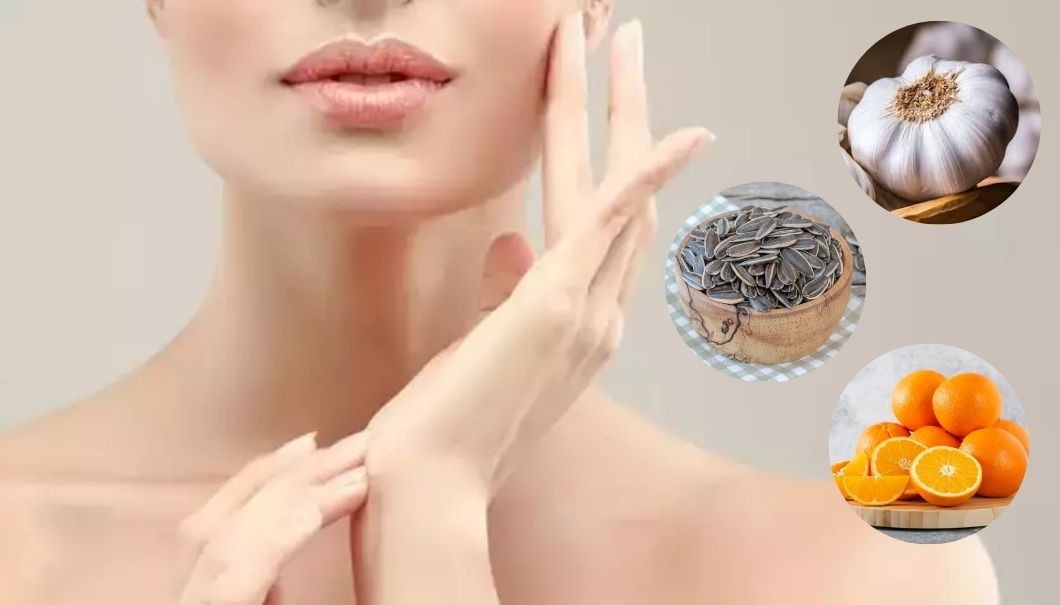 Portakal ve mandalina gibi meyveler, C vitamini bakımından son derece zengin bir içeriğe sahiptir ve bolca kolajen içerir. Doğal bir antibiyotik olan sarımsak, içerisindeki kükürt ile kolajen üretiminin artmasını destekler. Yeşil yapraklı sebzeler, antioksidan açısından zengindir ve vücuttaki kolajen üretiminin desteklenmesini sağlar. Enerji depolayan ayçiçeği çekirdeği, kabak çekirdeği, kaju ve ceviz gibi kuruyemiş çeşitleri, çinko içeriği ile kolajen üretiminin artmasını sağlar.