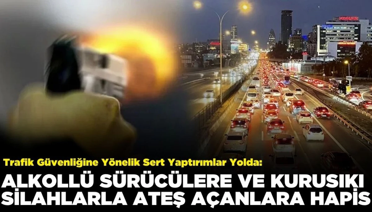 Trafik güvenliğini tehdit eden sürücülere yönelik cezai yaptırımlar sertleştiriliyor. Yeni düzenlemeye göre, alkollü ya da uyuşturucu madde etkisi altında araç kullanan sürücülere 6 aydan 2 yıla kadar hapis cezası verilmesi öngörülüyor. Bu ceza, yalnızca kazaya karışan değil, alkol ya da uyuşturucu etkisindeyken direksiyon başına geçen tüm sürücüleri kapsayacak.