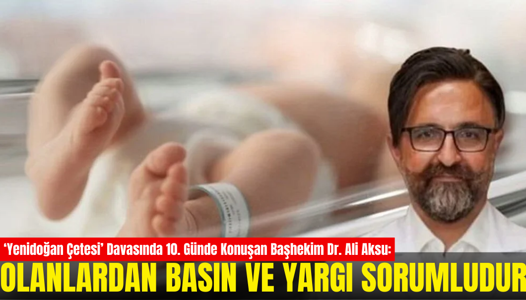 'Yenidoğan Çetesi' ile ilgili dava 10. gününde devam ediyor. Tutuksuz sanıkların savunma yaptığı 10. günde Birinci Hastanesi'nin sahibi Dr. Ali Aksu'nun "Basın ve yargı eliyle yargısız infaz yapıldığı ilk davadır" şeklindeki ifadesi mahkemeye damga vurdu.