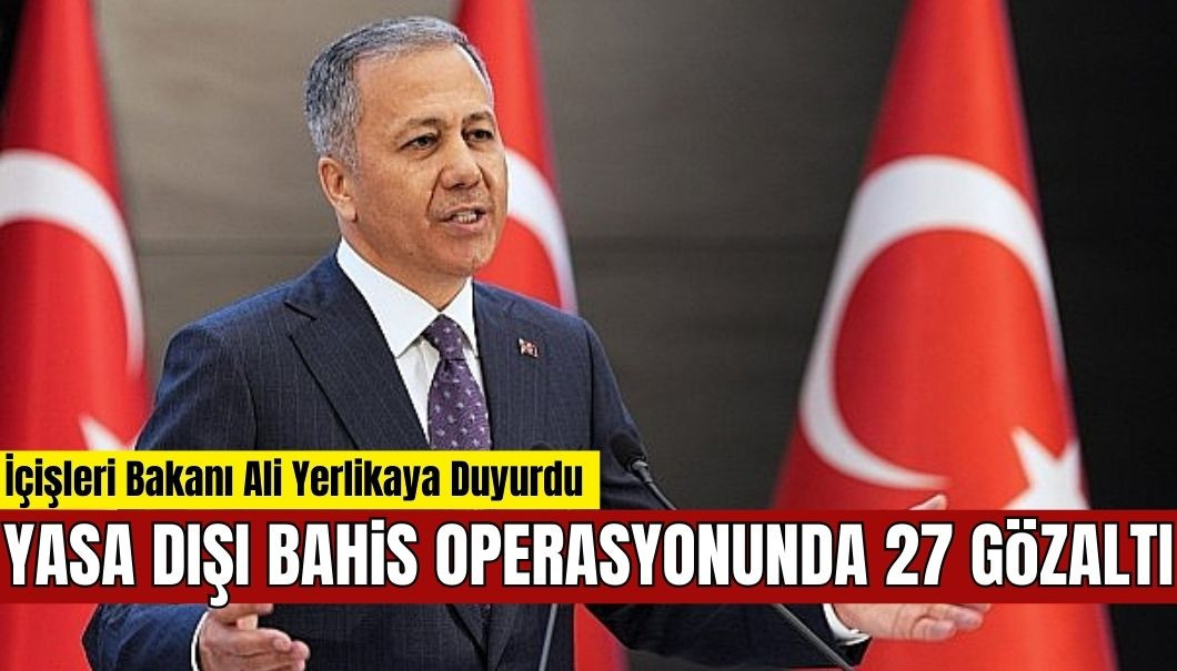 Bakan Yerlikaya, yasa dışı bahis operasyonunda 27 kişinin yakalandığını sosyal medya platformu üzerinden duyurdu.