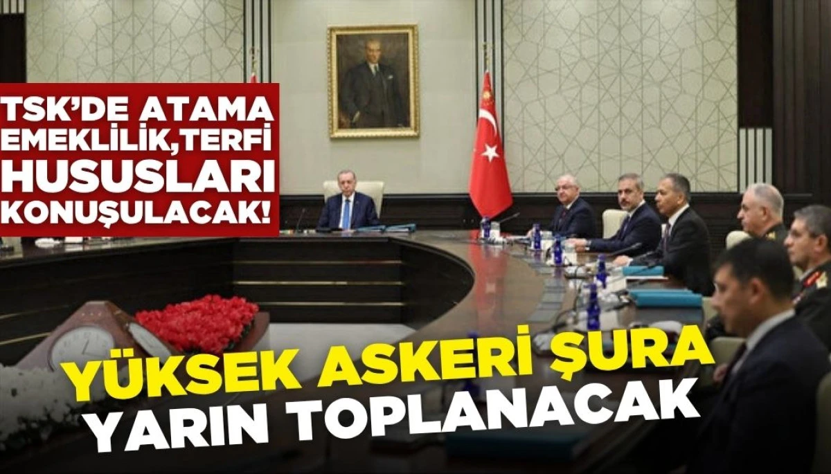 TSK'nin, Askeri Şura toplantısı yarın Cumhurbaşkanı Recep Tayyip Erdoğan başkanlığında gerçekleşecek. Toplantıda terfi, atama ve emeklilik kararları konuşulacak.