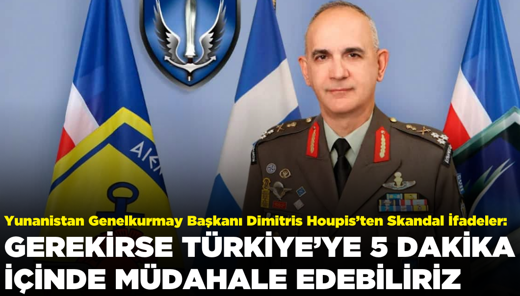 Türkiye'yi 'bir tehdit' olarak nitelendiren Yunanistan Genelkurmay Başkanı Dimitris Houpis, gerekirse Yunan ordusunun 5 dakika içinde Türkiye'ye müdahale edebileceğini öne sürdü.