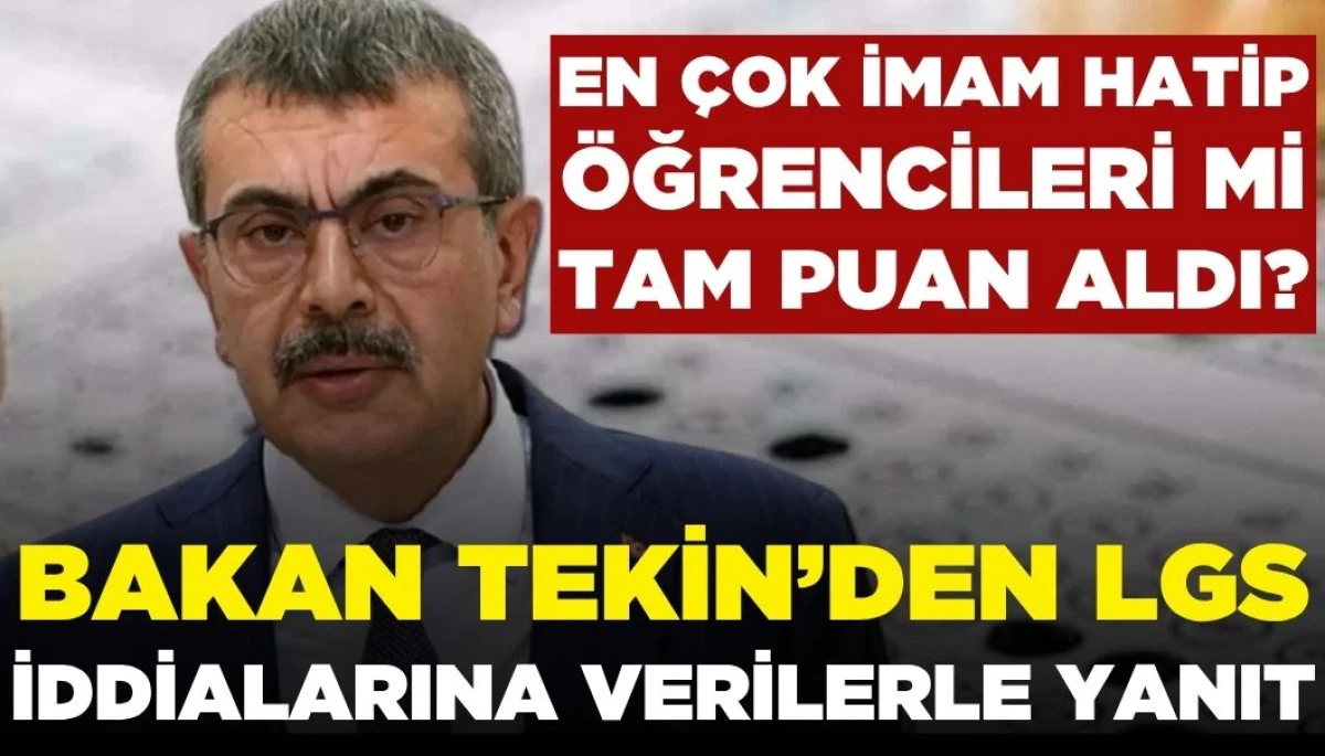 Milli Eğitim Bakanı Yusuf Tekin, LGS sınavındaki 'şaibe' iddialarına yanıt verdi. Tekin, tam puan alan öğrencilerin ders ortalamalarının da yüksek olduğunu belirtti.