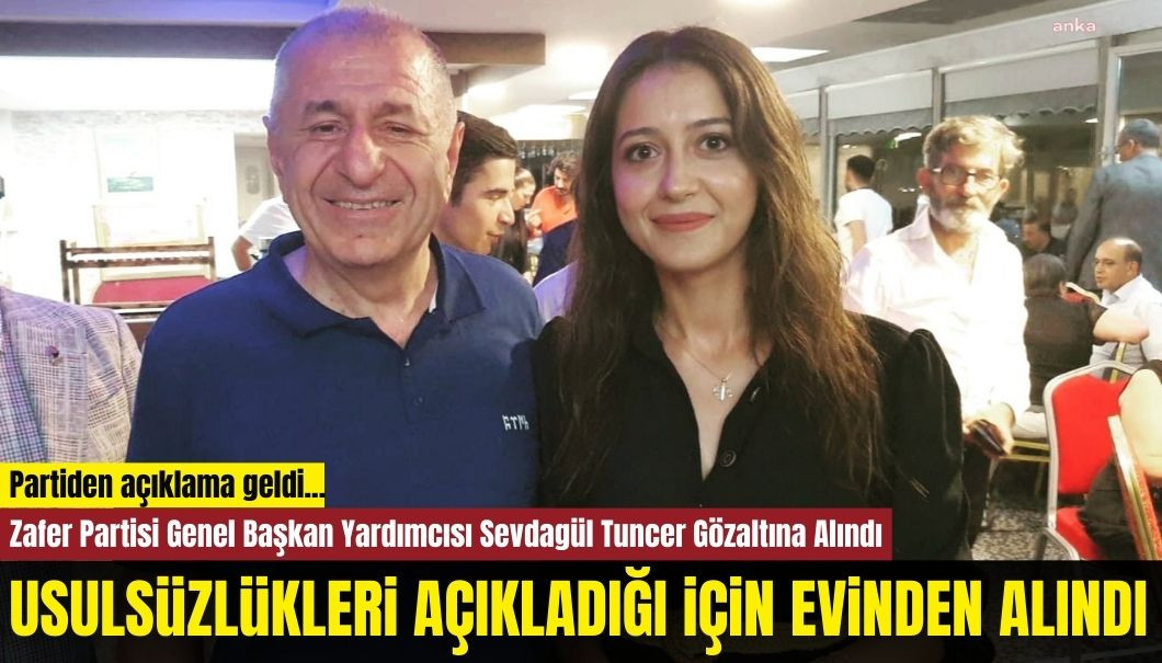 Zafer Partisi Genel Başkan Yardımcısı Sevdagül Tuncer dün sabah saatlerinde polis ekipleri tarafından evinden alınarak ifade vermek üzere emniyete götürüldü. Tuncer, ifadesinin ardından serbest bırakılırken Zafer Partisi'nden de konuya ilişkin açıklama geldi.