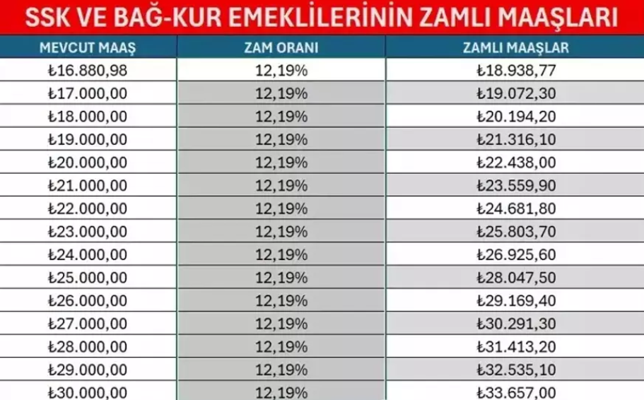 SSK ve Bağkur emeklilerinin ocak ayı zammı %12.19 oldu. Memur ve memur emeklilerinin zam oranı %18.60 olarak gerçekleşti.